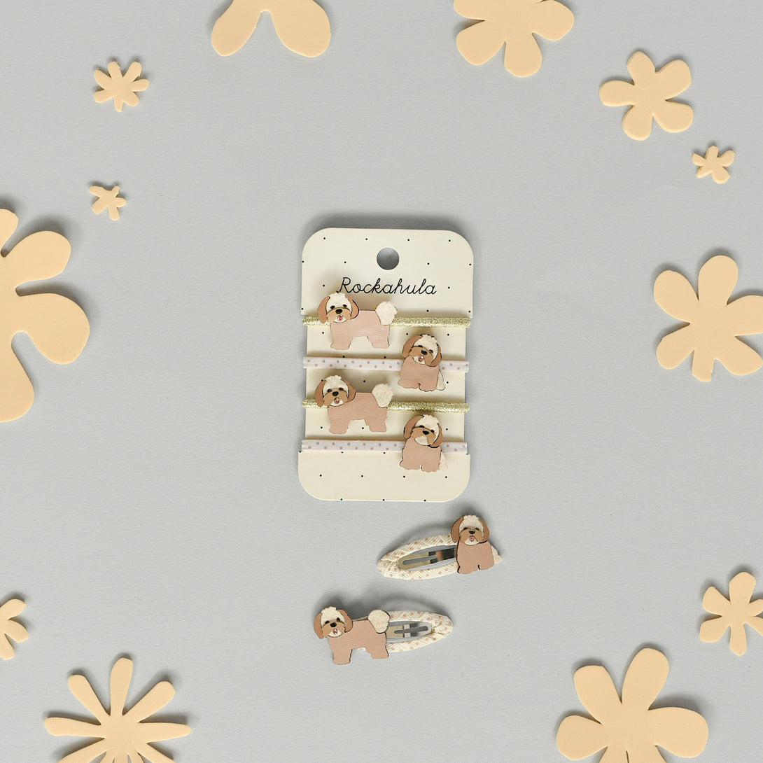 Our sweet little Dolly the Shih-Tzu adorns this set of four ponies. With Dolly wagging her tail on two elastics, and practicing her sitting skills on the others - this set of four ponies are the paw-fect accessory for any dog lovers! Woof woof!