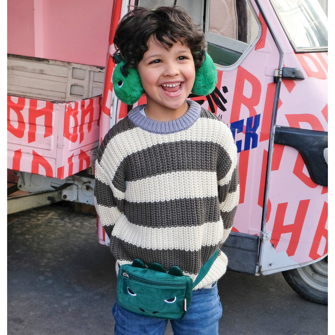 This totally roar-some bum bag is perfect for keeping essentials safely stored while having dinosaur adventures! Made with a soft velvet fabric, with dino face detailing and little spikes, dino lovers will want to take him everywhere! Our bumbag is fully lined with a stripy lining, and features a zip closure and an adjustable webbing waist strap and belt loop.