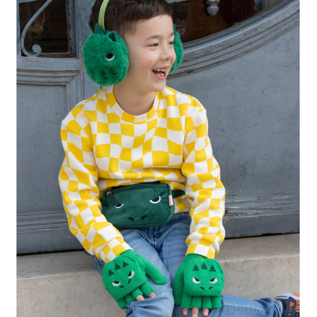 These totally roar-some gloves are the coolest way to keep little fingers warm this winter! With our new fingerless glove and fleece lined cap, they're perfect for wearing on winter dinosaur adventures. Each glove features a button to keep the cap secure when not in use, and a fully enclosed thumb.